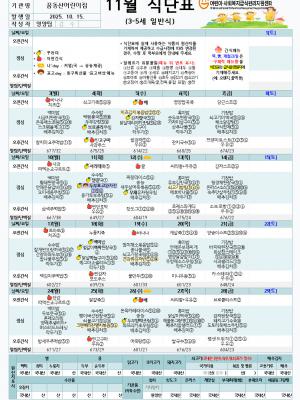 This is the monthly menu of GGUMDONGSAN Kindergarten.